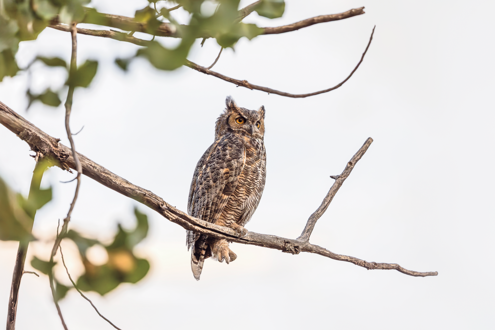 A great horned owl perches in a tree in Ouray National Wildlife Refuge in Utah.